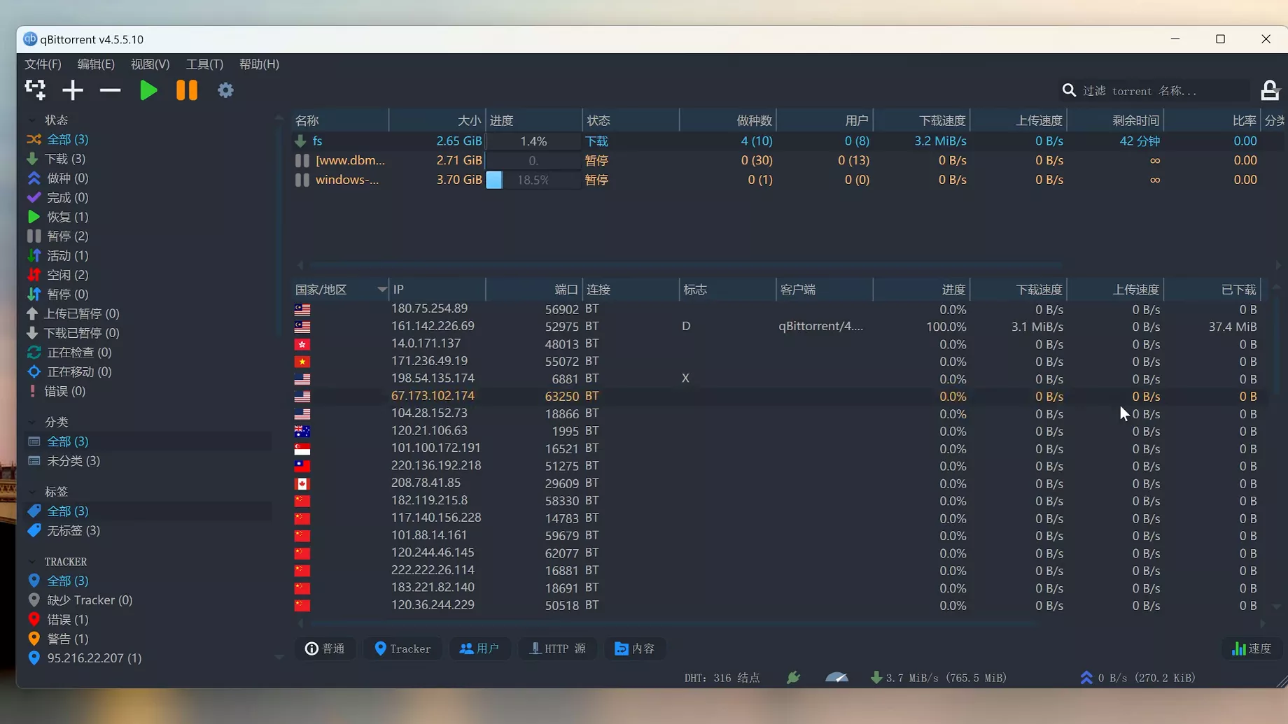 - 对种子、跟踪器和同级的高级控制