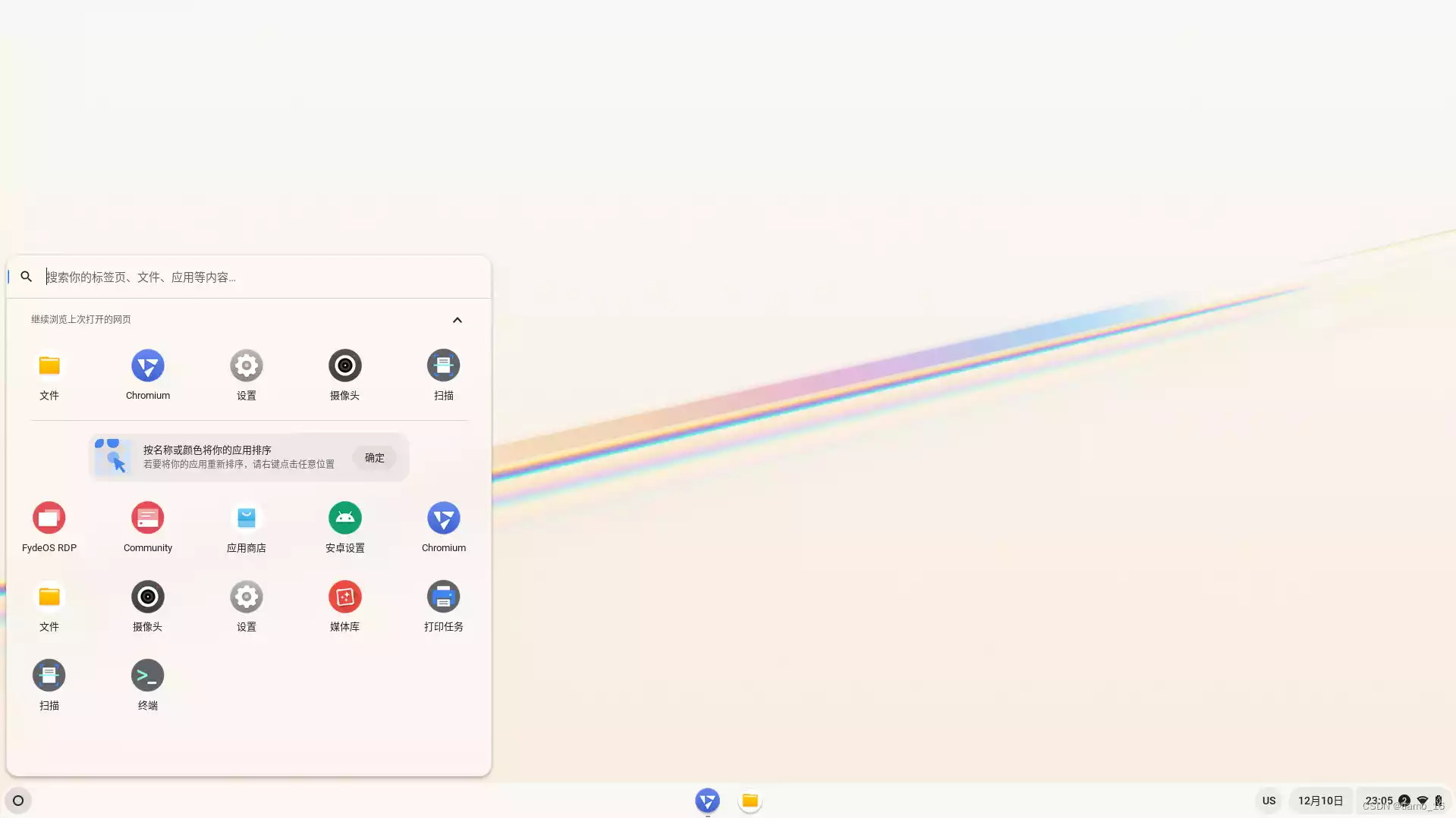 - 在 FydeOS 桌面,同时按下