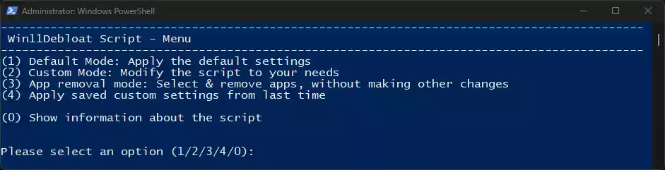 Default mode applies the following changes: - Remove the default selection of bloatware apps. (See below for full list) - Disable telemetry, diagnostic data, activity history, app-launch tracking & targeted ads. - Disable tips, tricks, suggestions and ads in start, settings, notifications, File Explorer, and on the lockscreen. - Disable & remove Bing web search & Cortana from Windows search. - Disable Windows Copilot. (Windows 11 only) - Show file extensions for known file types. - Hide the 3D objects folder under 'This pc' from File Explorer. (Windows 10 only) - Disable the widget service & hide the icon from the taskbar. - Hide the Chat (meet now) icon from the taskbar.