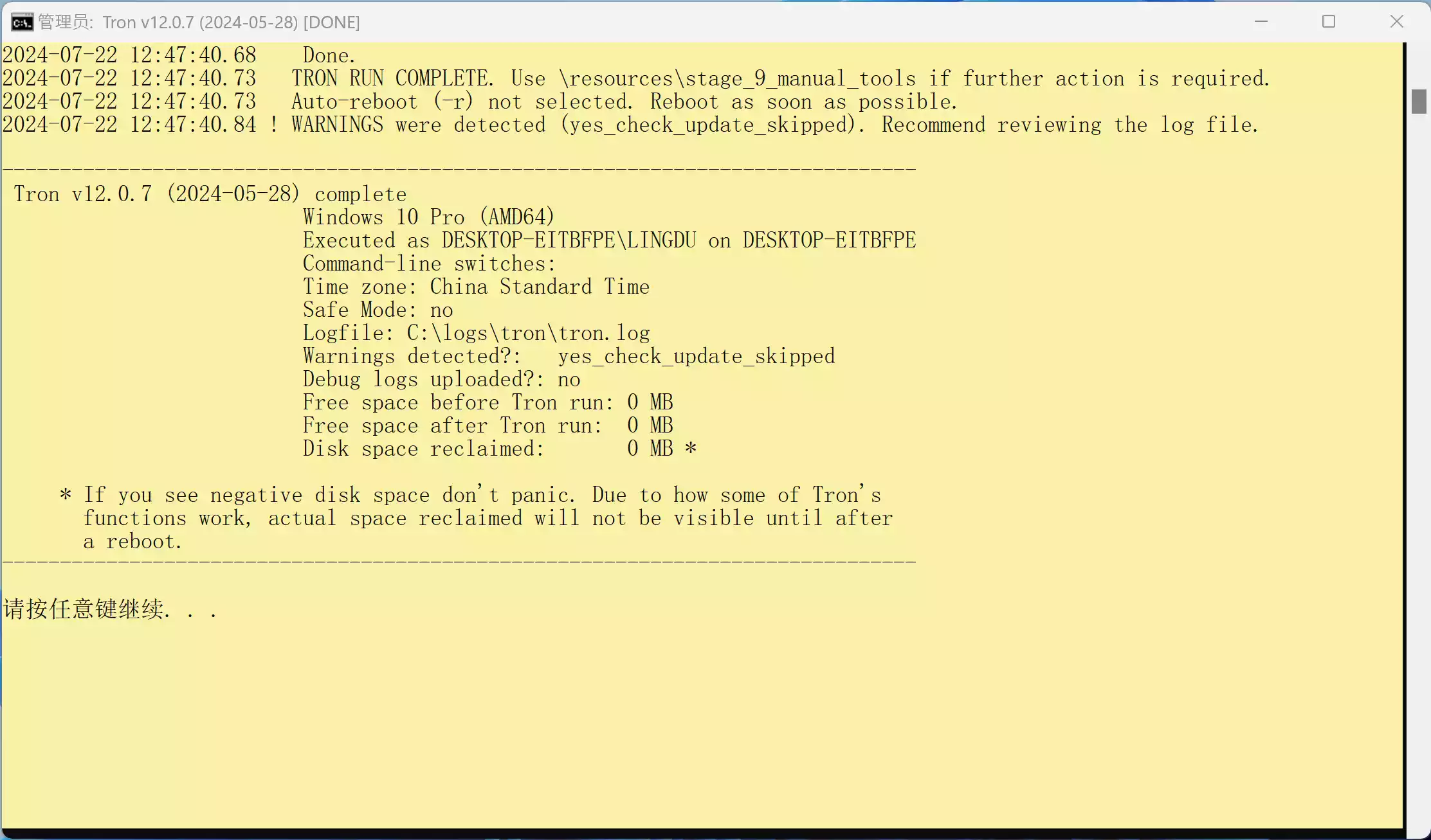 - 安全模式操作:Tron可以在Windows安全模式下运行,这有助于删除一些顽固的恶意软件。