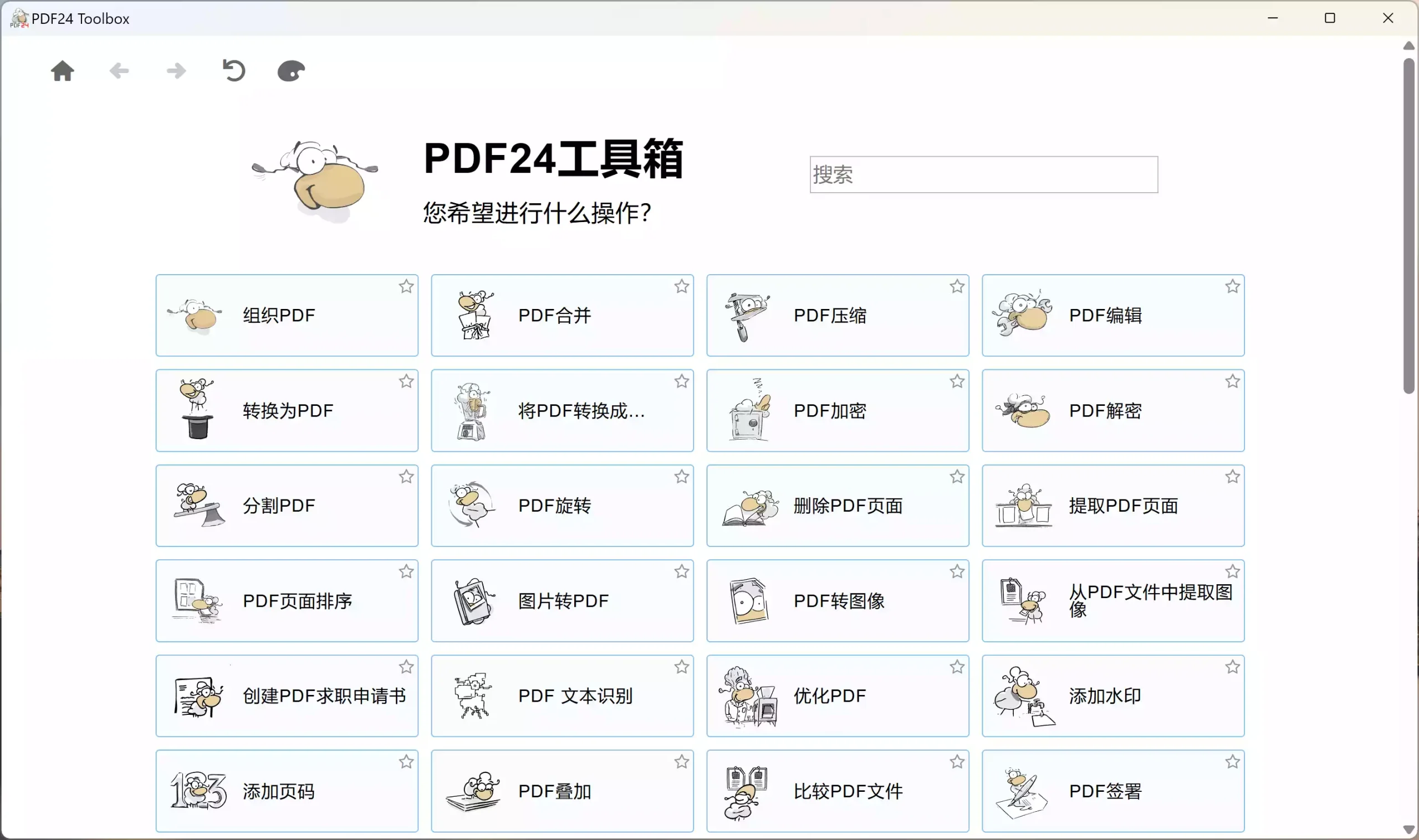 PDF24为您提供的这个工具集合可以让您更加有效率地处理PDF及其他类型文件。PDF工具集将让您彻底无忧,您将很难在PDF领域里找到PDF24无法处理的工作了。
