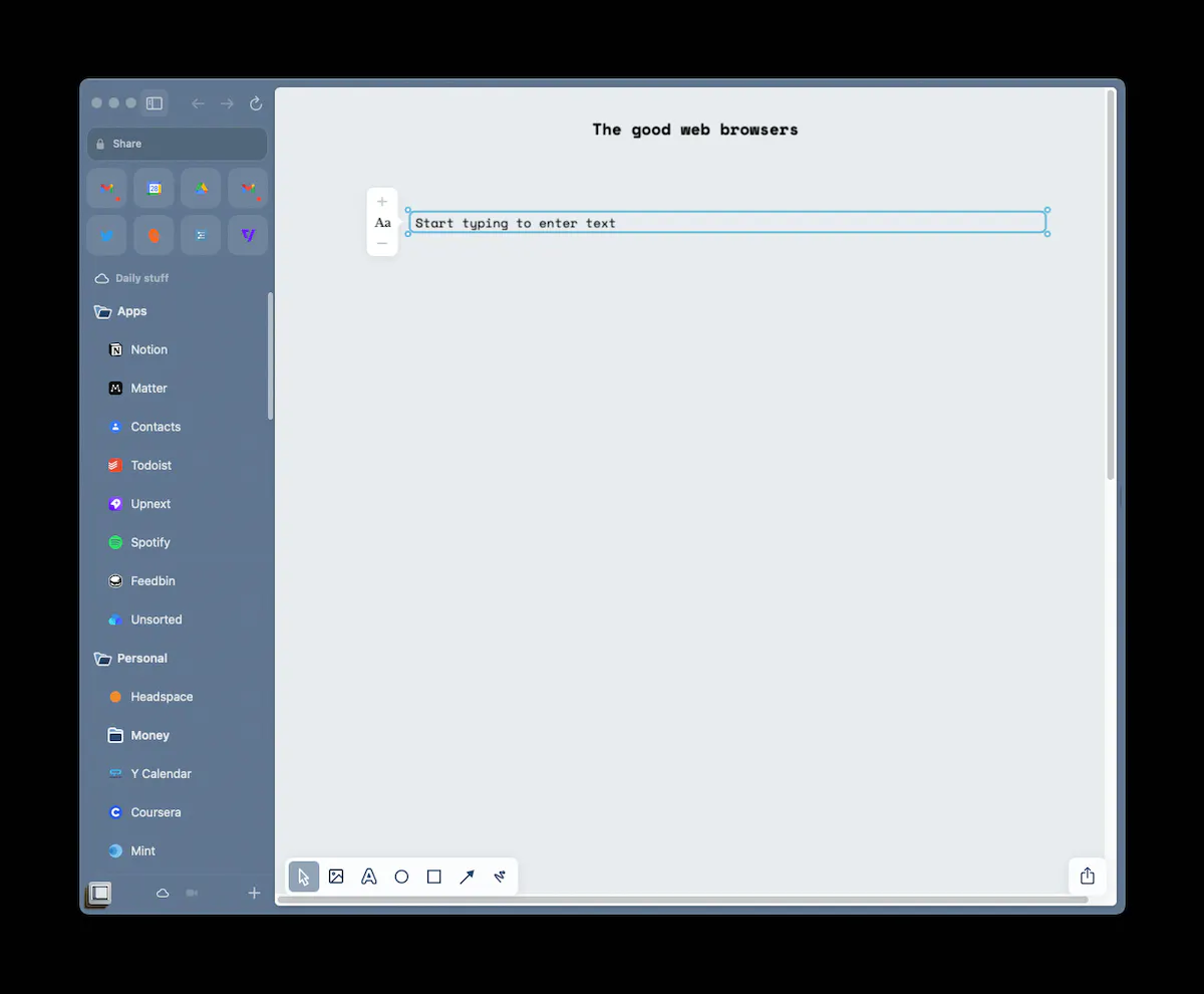 费舍尔最终决定,改进浏览器的最佳方法是从头开始。Arc 充满了关于 Web 浏览器如何工作的新想法:它将书签和标签组合成一个类似应用切换器的概念;它使您可以轻松地在打开的选项卡中进行搜索;它具有用于记笔记和制作可共享迷你网站的内置工具。这种体验可能会很刺耳,因为它是如此不同,但费舍尔说这是他兴奋的部分原因。“这不是人们以前没有谈论过的东西,”他说,“但实际上将它放在一起并专注于它并考虑走很长的路要走的小步骤,我认为这就是有很多机会的地方。”